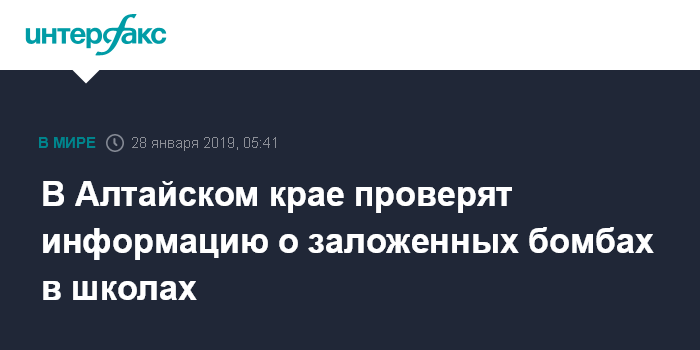 Москва. 28 января. INTERFAX.RU - Сообщения о минировании школ в Барнауле и Новоалтайске проверяют в Алтайском крае, сообщили в понедельник агентству "Интерфакс" в пресс-центре главного управления МЧС РФ по региону.
