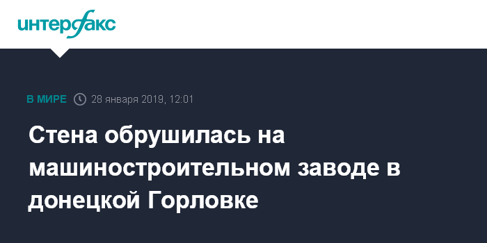Москва. 28 января. INTERFAX.RU - Обрушение стен произошло в цехе машиностроительного завода в городе Горловка, подконтрольном самопровозглашенной Донецкой народной республике.