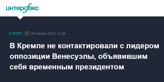 В Кремле не контактировали с лидером оппозиции Венесуэлы, объявившим себя временным президентом
