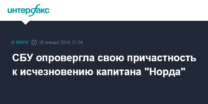 Москва. 28 января. INTERFAX.RU - Служба безопасности Украины (СБУ) заявляет, что не задерживала капитана российского сейнера "Норд" Владимира Горбенко, удерживаемого с марта 2018 года на Украине и не выходящего на связь с родственниками и адвокатами уже третьи сутки.