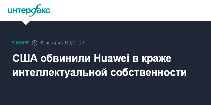 Москва. 29 января. INTERFAX.RU - Судебные власти США объявили о предъявлении китайской Huawei обвинений в краже интеллектуальной собственности, сообщило агентство Associated Press.