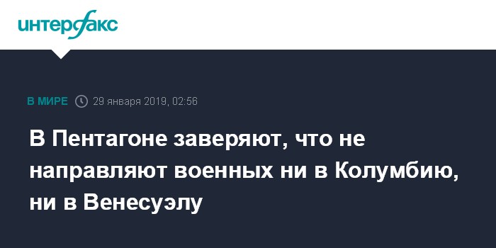 Москва. 29 января. INTERFAX.RU - Американское военное командование не направляет военнослужащих в Колумбию или Венесуэлу, сообщает телеканала NBC со ссылкой на трех высокопоставленных сотрудников Пентагона.