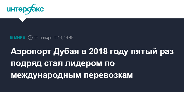 Москва. 29 января. INTERFAX.RU - Международный аэропорт Дубая (Dubai International, DXB) в 2018 году сохранил звание самого загруженного аэропорта мира по объему международных пассажирских перевозок по итогам пятого года подряд.