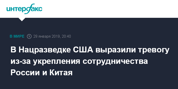В Нацразведке США выразили тревогу из-за укрепления сотрудничества России и Китая
