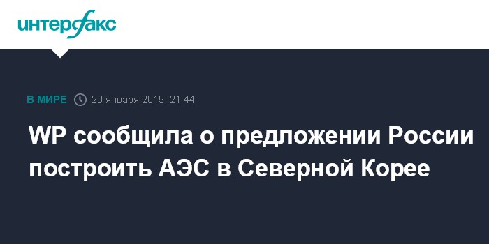 Москва. 29 января. INTERFAX.RU - Россия тайно предлагала КНДР расположить на ее территории АЭС в обмен на то, что Пхеньян откажется от ядерного и баллистического вооружения, сообщает во вторник газета Washington Post со ссылкой на неназванные источники.