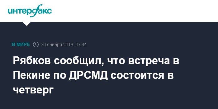 Рябков сообщил, что встреча в Пекине по ДРСМД состоится в четверг