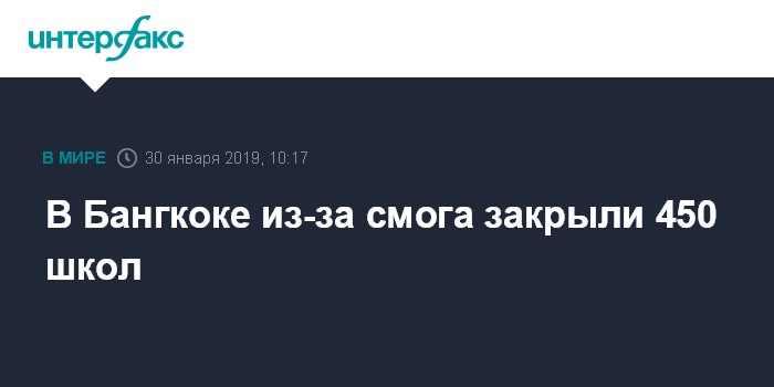 Москва. 30 января. INTERFAX.RU - Власти Бангкока в среду распорядились приостановить работу около 450 школ из-за беспрецедентного загрязнения атмосферы над столицей Таиланда, пишет в среду Guardian.