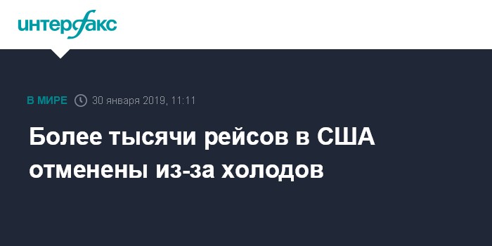 Москва. 30 января. INTERFAX.RU - Сильные холода на Среднем Западе США привели к отмене более тысячи авиарейсов, поскольку сотрудники аэропортов не справляются с подготовкой в условиях экстремальных температур, сообщает в среду CNN.