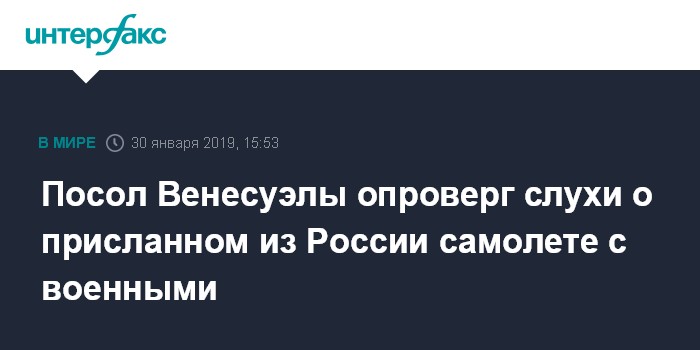 Посол Венесуэлы опроверг слухи о присланном из России самолете с военными