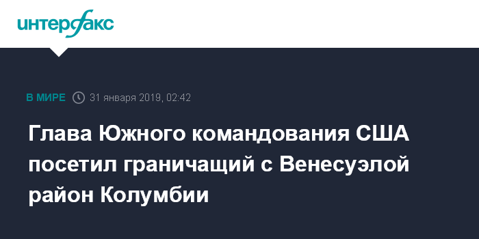 В частности, военачальник побывал в городе Кукута, расположенном близ границы с Венесуэлой. В сообщениях указывается, что адмирал ознакомился с обстановкой в этом районе.