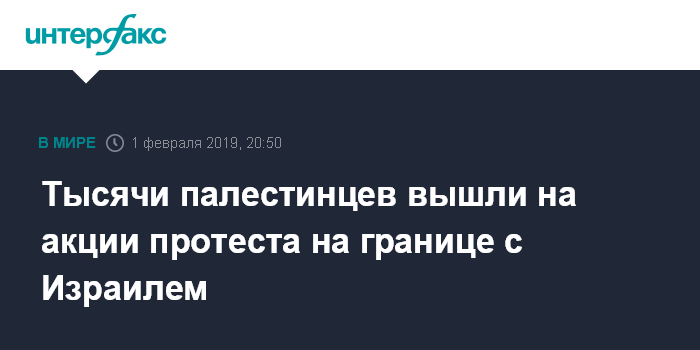 Москва. 1 февраля. INTERFAX.RU - Порядка 10 тысяч палестинцев приняли участие в акциях протеста, вылившихся в беспорядки на границе сектора Газа и Израиля, сообщают израильские СМИ.