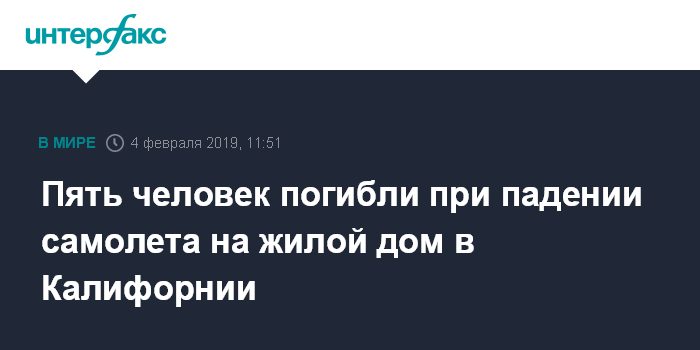 Пять человек погибли при падении самолета на жилой дом в Калифорнии