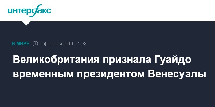 26 января Франция, ФРГ, Испания и Великобритания объявили, что признают Гуайдо временным главой государства, если в стране не будут объявлены выборы в течение ближайших восьми дней.