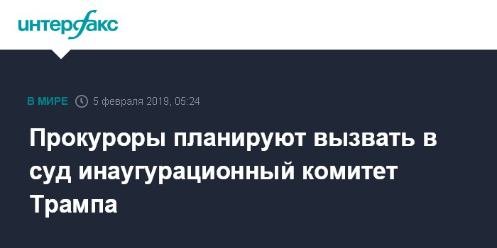 Москва. 5 февраля. INTERFAX.RU - Прокуроры южного округа Нью-Йорка планируют вызвать в суд инаугурационный комитет президента США Дональда Трампа, сообщил телеканал ABC News.