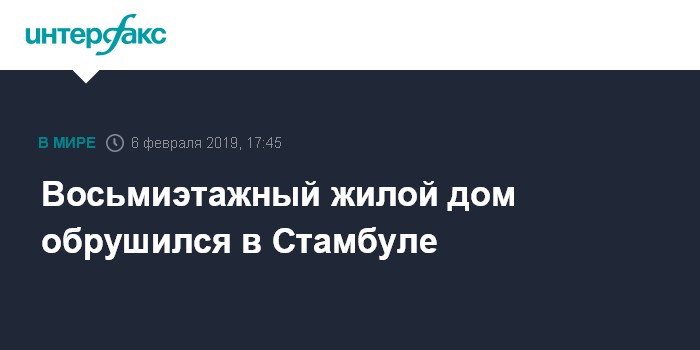 Москва. 6 февраля. INTERFAX.RU - Восьмиэтажный дом обрушился в районе Картал в азиатской части Стамбула, сообщает в среду Daily Sabah; один человек погиб, еще несколько могут оставаться под завалами.