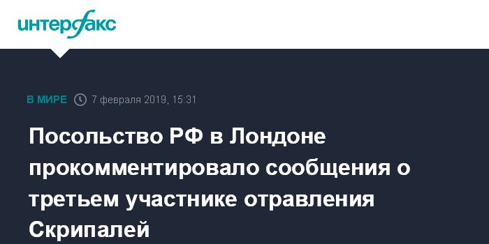 Москва. 7 февраля. INTERFAX.RU - В посольстве РФ в Великобритании в четверг назвали очередным вбросом сообщения о третьем участнике инцидента в Солсбери, которые накануне появились в британской прессе.