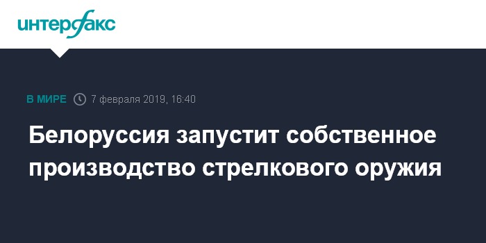 Москва. 7 февраля. INTERFAX.RU - Белоруссия создала собственное производство стрелкового оружия и намерена его экспортировать, сообщил журналистам в четверг в Минске госсекретарь белорусского Совбеза Станислав Зась.