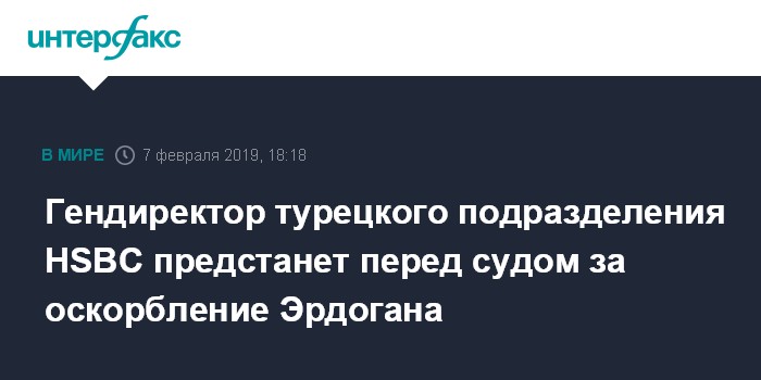 Гендиректор турецкого подразделения HSBC предстанет перед судом за оскорбление Эрдогана