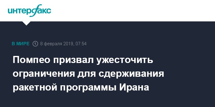 Москва. 8 февраля. INTERFAX.RU - Госсекретарь США Майк Помпео призвал восстановить более жесткие международные ограничения для сдерживания ракетной программы Ирана.
