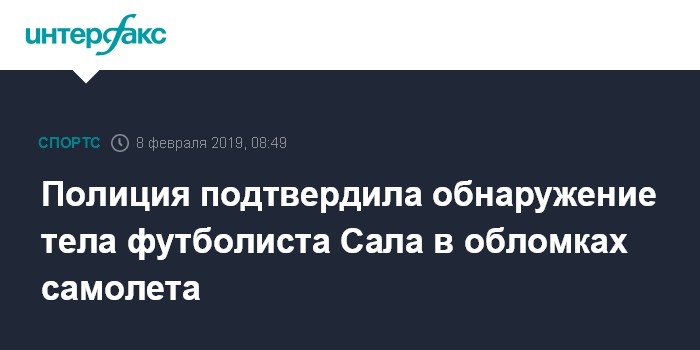 Москва. 8 февраля. INTERFAX.RU - Полиция графства Дорсет подтвердила, что из обломков разбившегося самолета извлечено тело аргентинского футболиста Эмилиано Сала.