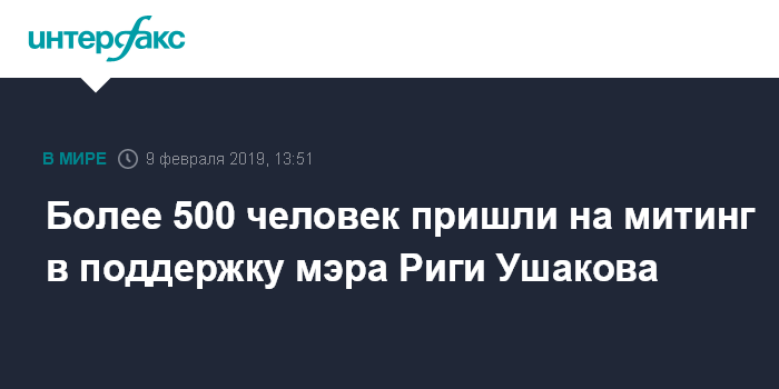 Москва. 9 февраля. INTERFAX.RU - На митинг в поддержку мэра Риги Нила Ушакова, который начался на Ратушной площади в субботу по местному времени, пришло около 600 человек, люди продолжают прибывать.