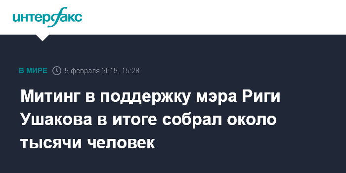 Москва. 9 февраля. INTERFAX.RU - На митинг в поддержку мэра Риги Нила Ушакова, который был созван на Ратушной площади в субботу, пришло около тысячи человек.
