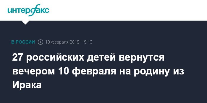 27 российских детей вернутся вечером 10 февраля на родину из Ирака