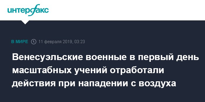 Москва. 11 февраля. INTERFAX.RU - Венесуэльские военнослужащие и ополченцы приступили к учениям, которые в руководстве страны называют самыми масштабными в истории этого государства, передают латиноамериканские СМИ.