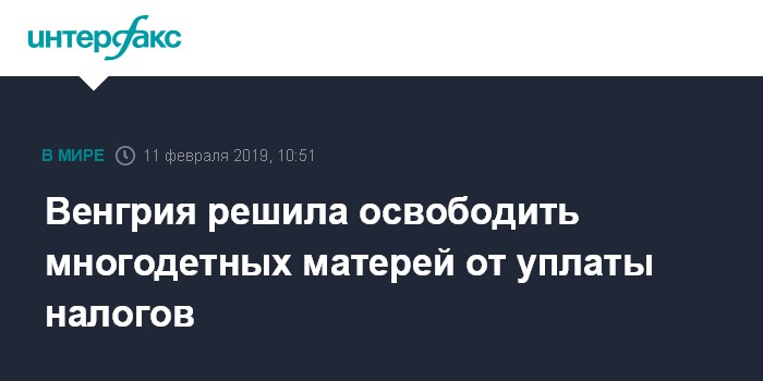 Москва. 11 февраля. INTERFAX.RU - Премьер-министр Венгрии Виктор Орбан объявил о намерении освободить от уплаты подоходного налога женщин, у которых четыре или более детей.