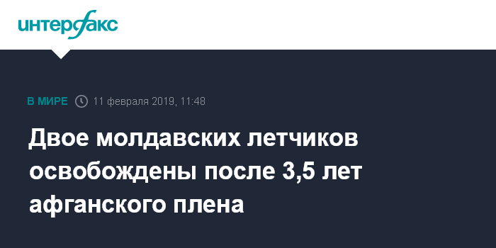 Москва. 11 февраля. INTERFAX.RU - Двое молдавских пилотов, которые находились в плену в Афганистане на протяжении трех с половиной лет, были освобождены, сообщил президент Молдавии Игорь Додон на брифинге в понедельник.