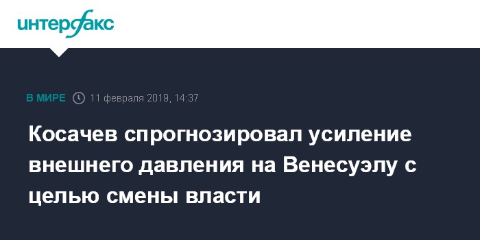 Москва. 11 февраля. INTERFAX.RU - Попытки сменить власть в Венесуэле извне, скорее всего, будут только нарастать, позиция невмешательства России остается неизменной, заявил глава комитета Совета Федерации по международным делам Константин Косачев.