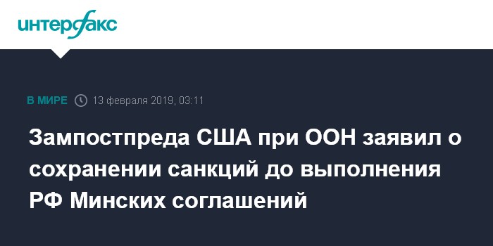 Зампостпреда США при ООН заявил о сохранении санкций до выполнения РФ Минских соглашений