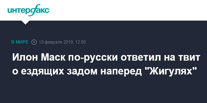Илон Маск по-русски ответил на твит о ездящих задом наперед "Жигулях"