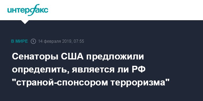 Москва. 14 февраля. INTERFAX.RU - Группа сенаторов США выступила в среду с предложением определить, может ли Россия считаться страной, поддерживающей терроризм.