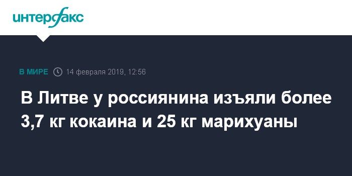 Москва. 14 февраля. INTERFAX.RU - В Литве задержан гражданин РФ, перевозивший на своей машине крупную партию наркотиков, сообщила Таможенная служба республики.