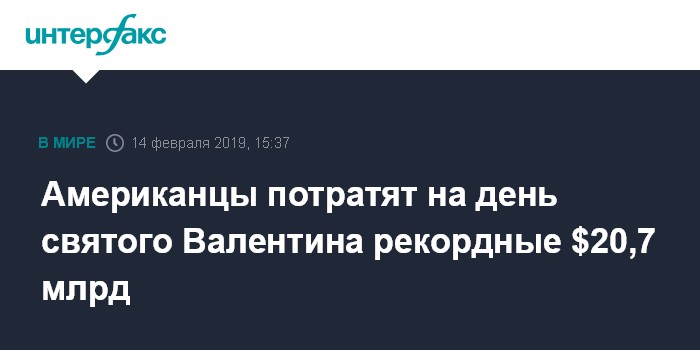 Американцы потратят на день святого Валентина рекордные $20,7 млрд