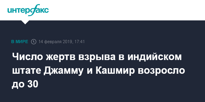 Число жертв взрыва в индийском штате Джамму и Кашмир возросло до 30