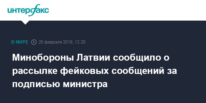 Минобороны Латвии сообщило о рассылке фейковых сообщений за подписью министра