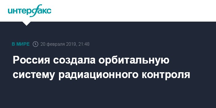 Москва. 20 февраля. INTERFAX.RU - Система контроля солнечной и космической радиации создана на российской орбитальной группировке, сообщает "Роскосмос".