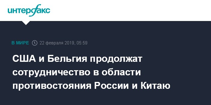США и Бельгия продолжат сотрудничество в области противостояния России и Китаю