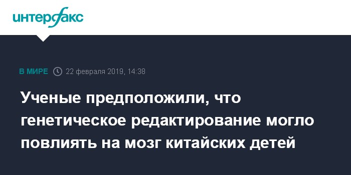 Москва. 22 февраля. INTERFAX.RU - Китайский ученый Цзянькуй Хэ, заявивший ранее о рождении первых в мире детей, генетически отредактированных методом CRISPR, помимо устойчивости к заражению ВИЧ, скорее всего, внес изменения и в работу их мозга. Ген CCR5, который он редактировал, связывают с памятью, когнитивными способностями и даже восстановлением после инсульта. Как именно редактирование повлияет на работу мозга детей, однако, пока не ясно, пишет N+1 со ссылкой на MIT Technology Review.