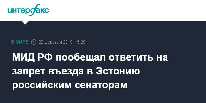 МИД РФ пообещал ответить на запрет въезда в Эстонию российским сенаторам