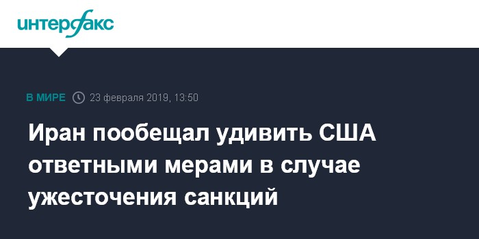 Москва. 23 февраля. INTERFAX.RU - Глава МИД Ирана Джавад Зариф заявил, что Тегеран может удивить США ответными мерами в том случае, если Соединенные Штаты решат ужесточить антииранские ограничительные меры в области экспорта нефти, сообщает в субботу швейцарская газета Basler Zeitung.