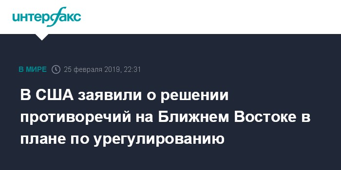 В США заявили о решении противоречий на Ближнем Востоке в плане по урегулированию