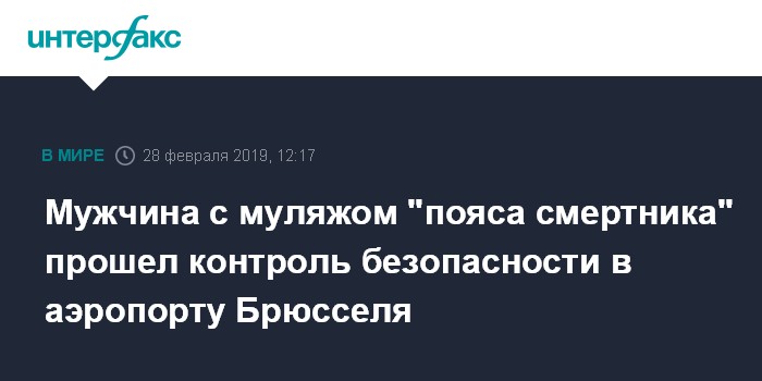 Москва. 28 февраля. INTERFAX.RU - Пассажир с целью проверки качества мер безопасности в международном аэропорту Брюсселя "Завентем" сумел пройти контроль с имитацией "пояса смертника", сообщила фламандская газета Het Laatste Nieuws.