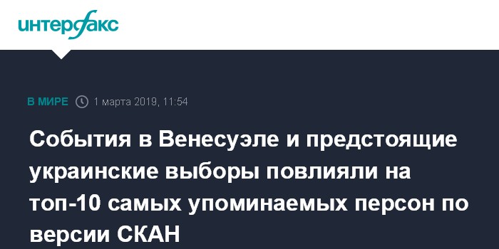 События в Венесуэле и предстоящие украинские выборы повлияли на топ-10 самых упоминаемых персон по версии СКАН
