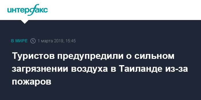 Москва. 1 марта. INTERFAX.RU - Высокая загрязненность воздуха ожидается в Таиланде из-за лесных пожаров на севере страны, сообщает ситуационно-кризисный центр МИД РФ (ДСКЦ) в пятницу.