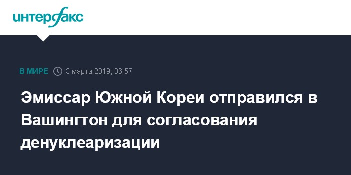 Эмиссар Южной Кореи отправился в Вашингтон для согласования денуклеаризации