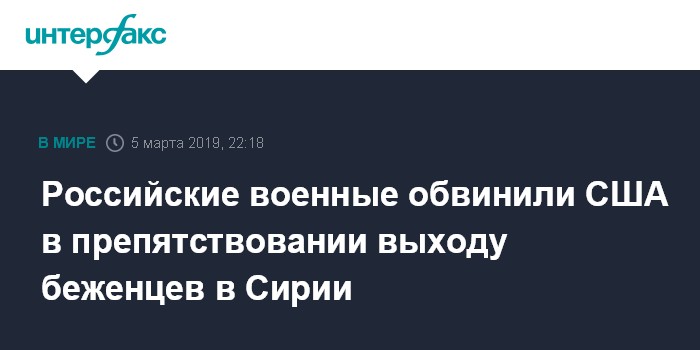Российские военные обвинили США в препятствовании выходу беженцев в Сирии