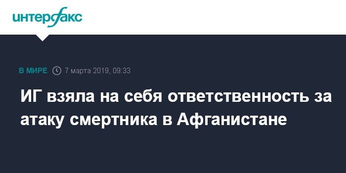 Москва. 7 марта. INTERFAX.RU - Боевики "Исламского государства" (ИГ - запрещенная в России террористическая организация) взяли на себя ответственность за нападение на строительную компанию вблизи аэропорта города Джелалабад в восточной афганской провинции Нангархар, жертвами которого в минувшую среду стали 16 человек, сообщает в четверг афганское агентство Khaama Press.